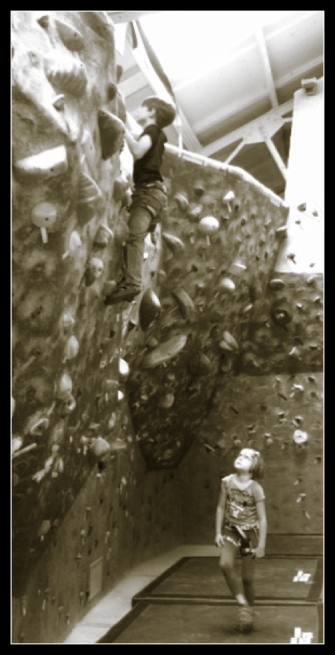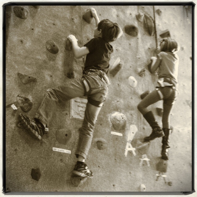 And shortly after this adventure they wanted to practice bouldering (no harness, height they are comfortable with jumping down from)