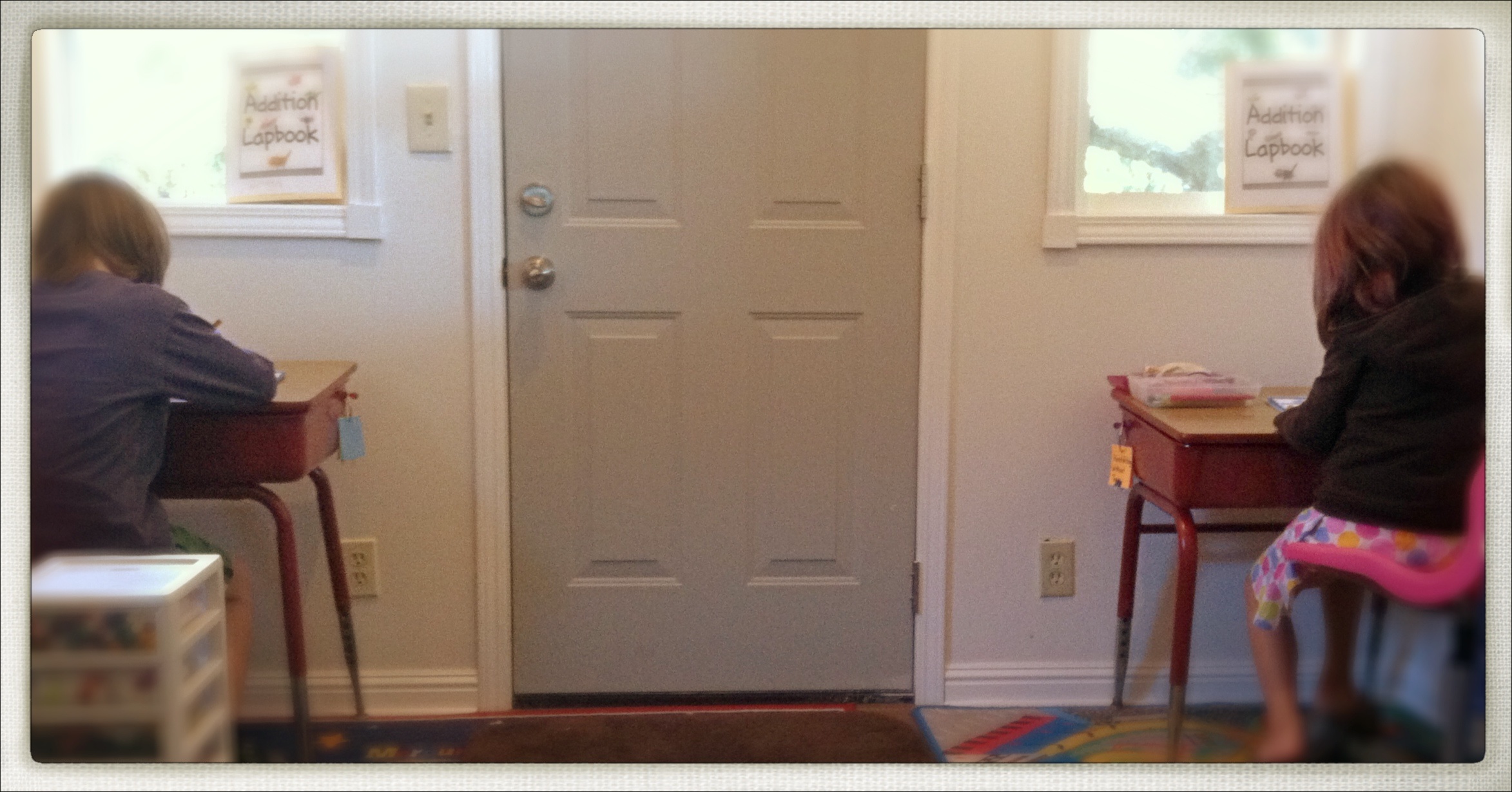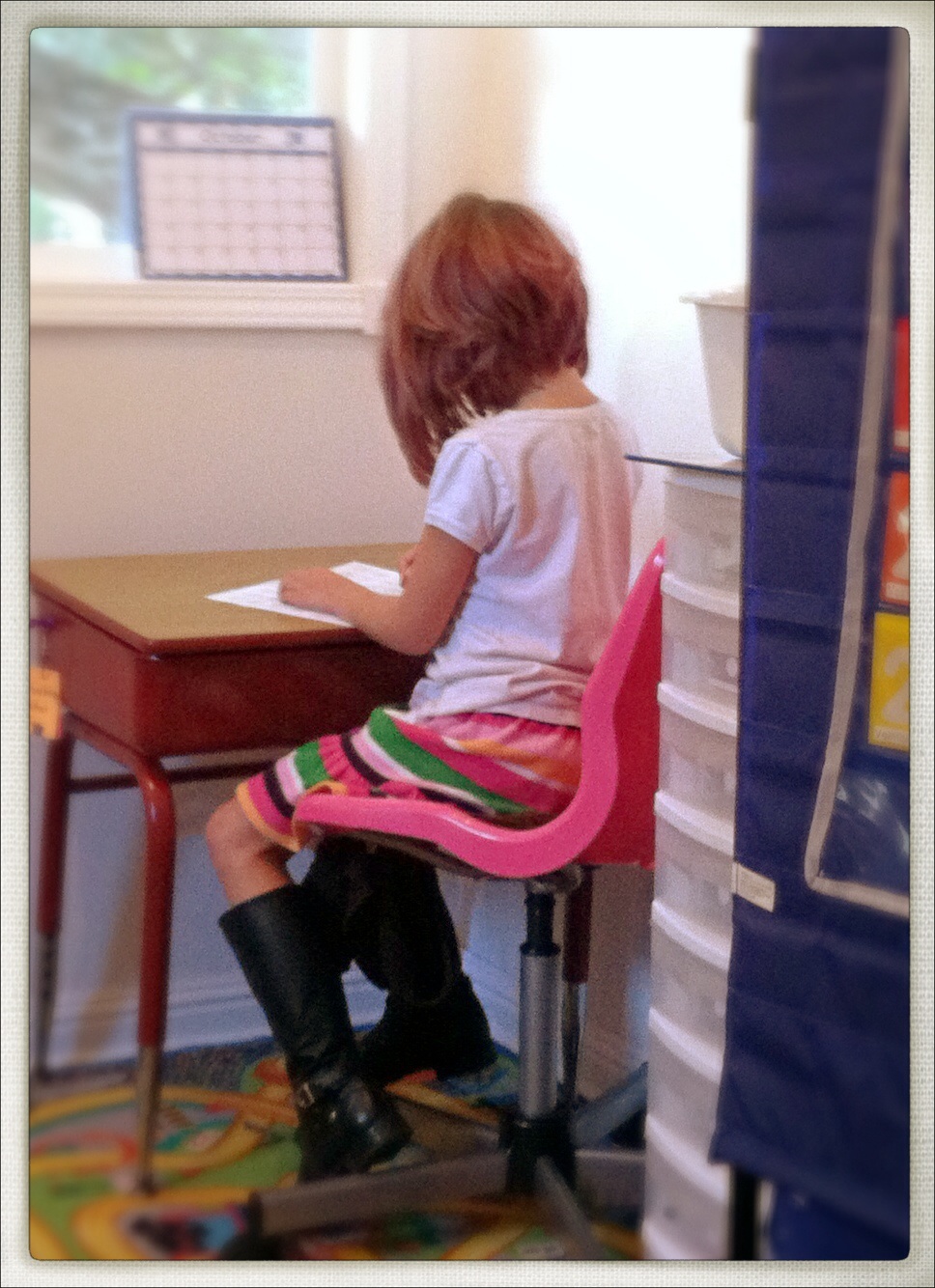 And of course “SCHOOL TIME” – both kiddos enjoy desk work (believe it or not!) I have my theories on why my kids think school work is fun…pretty much has to do with the fact it’s THEIR CHOICE.