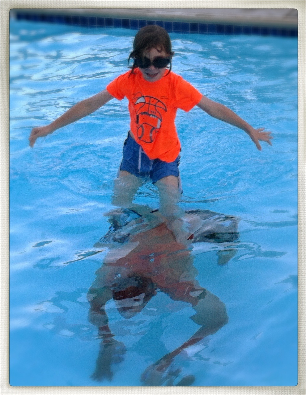 “SURFING” on Grandpa’s back – I remember doing these things with my dad as a child and it’s fun to see my kids enjoying the same adventures. He would throw us up in the air, across the pool, we’d swim on his back and pretend he was a dolphin, Surf across the pool on his back. And it appears he still has the touch!