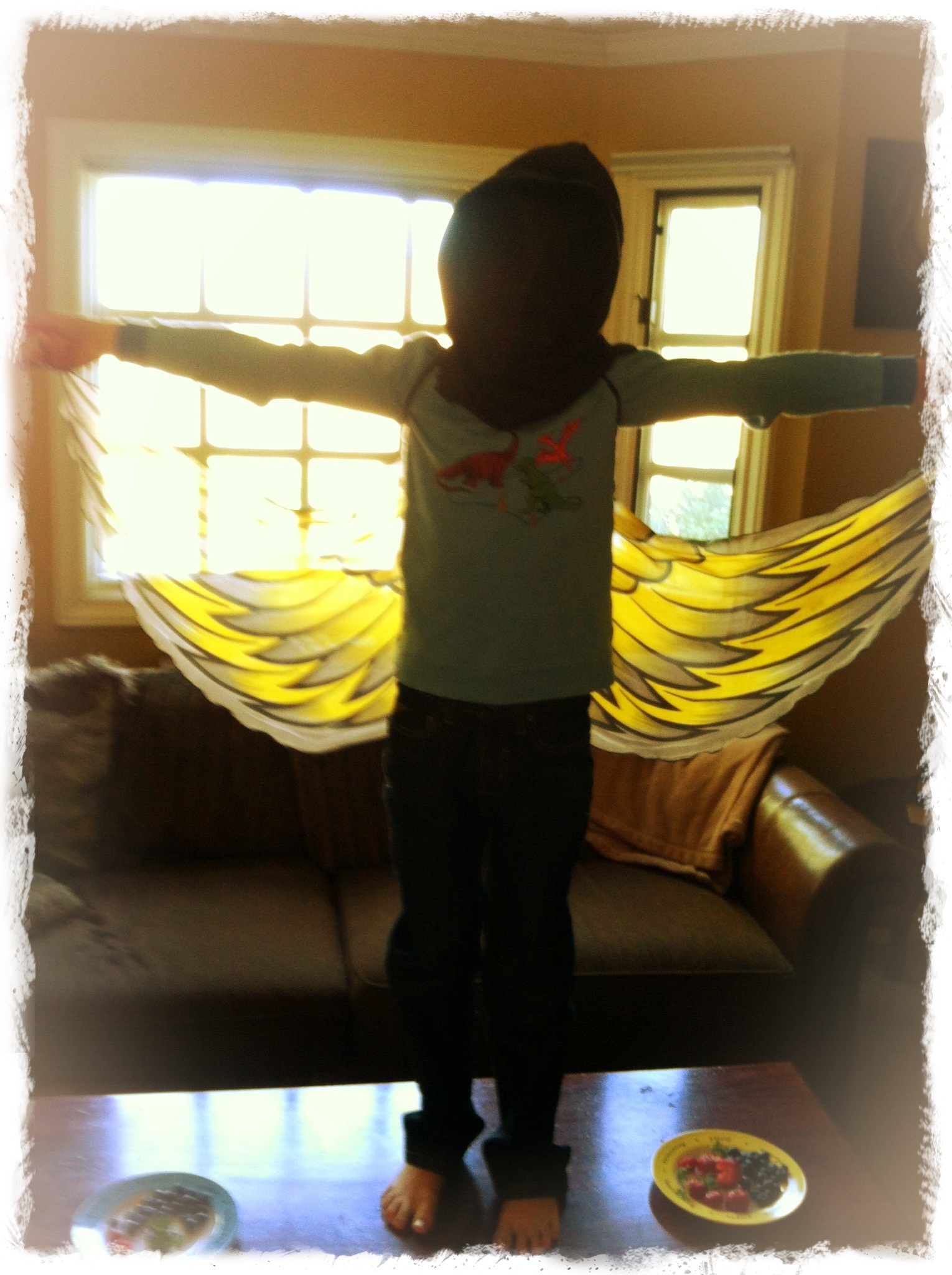 Son: Did you know your body is complex? You can eat upside down! (as he puts a handful of popcorn in his mouth upside down…apparently one can defy gravity in some ways)