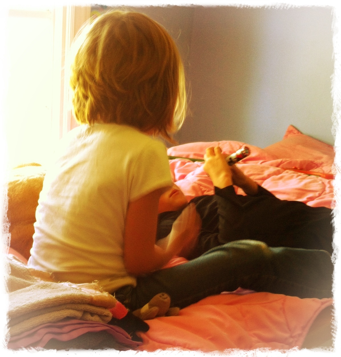 Contemplating life I suppose? I wonder if school kids get much quiet time to just think their thoughts. I know when I have a busy day it takes a lot of quiet practice to come down and feel grounded and able to just think my thoughts, so I love seeing my kids pondering life or maybe Ben 10 costumes ha ha!, but just having quiet moments to think their own personal private thoughts.