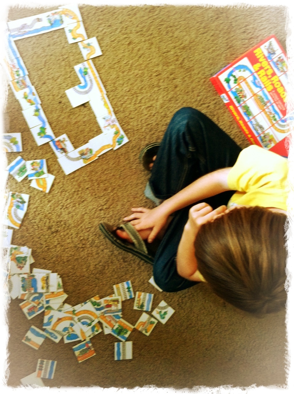 A bit later one set of friends left and another arrived…The girls were playing with the doll house and it wasn’t really my son’s gig, so he played this game by himself in more of a puzzly way.