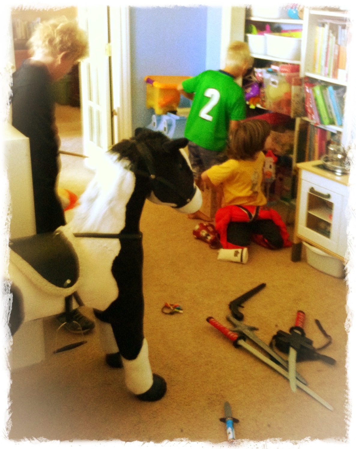 Play time: (trying to sort out weapons, game rules, costumes…all really important stuff!)